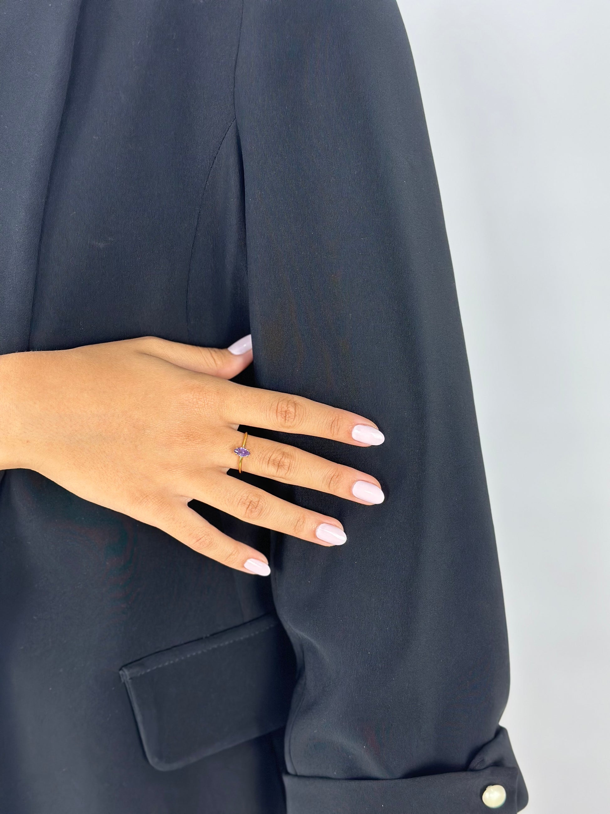 The Gemstone Harmony Rings feature delicate gold bands adorned with oval-cut gemstones in a spectrum of vibrant colors. Their minimalist design and refined elegance make them perfect for stacking or wearing alone as a subtle statement piece.